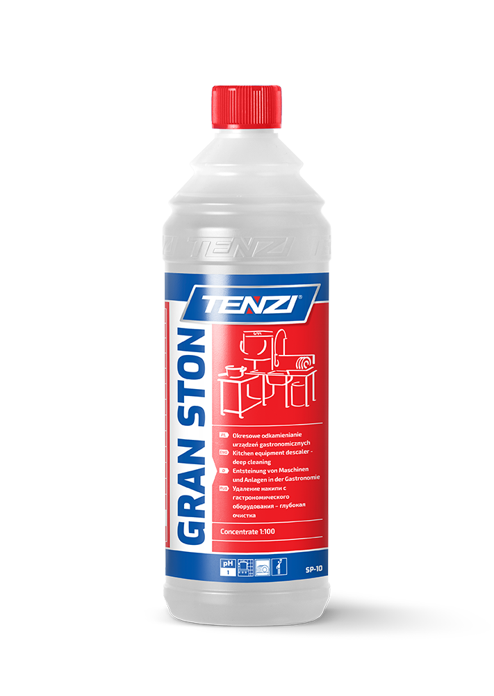 Gran Ston - это кислотное средство на основе фосфорной кислоты, разработанное для эффективного удаления накипи с гастрономического оборудования, такого как котлы, посудомоечные машины и бойлеры. Продукт превосходно удаляет известковый налет, образовавшийся в результате применения твёрдой воды.