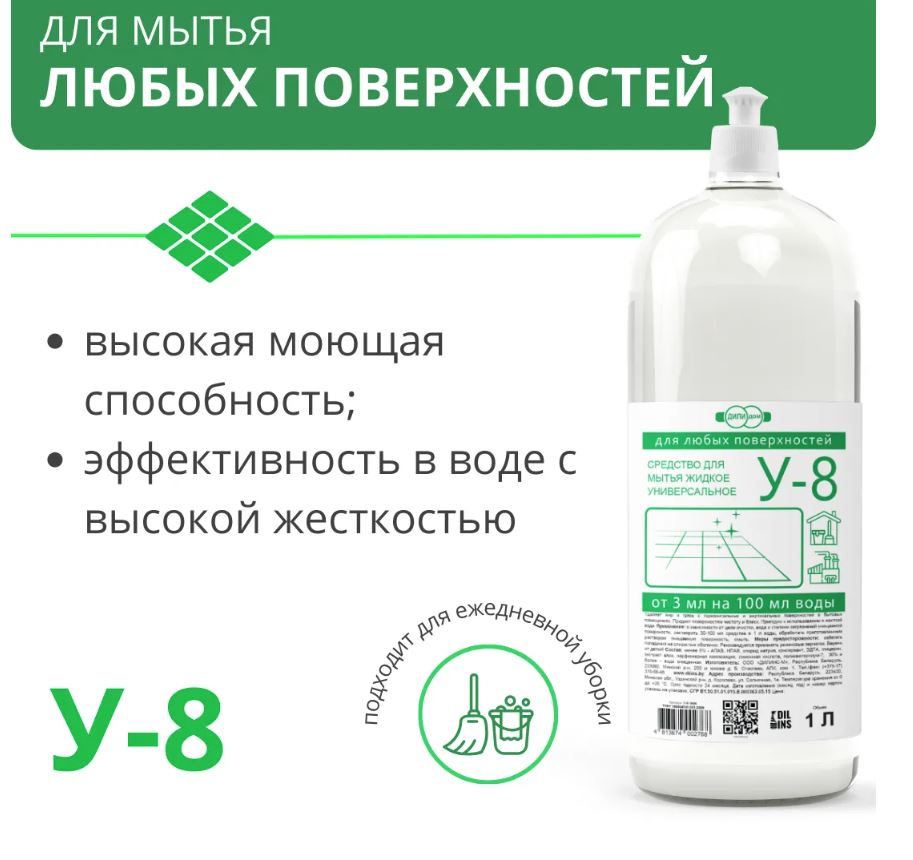 Для заказа товара "Средство для мытья жидкое универсальное У-8, 1000 мл" - добавьте его в корзину. Далее перейдите в Корзину и нажмите на «Оформить заказ». Последовательно заполните поля: «Название компании», "УНП", "Юридический адрес", "Расчетный счет", контактные данные и «Адрес доставки». В поле «Комментарии» внесите необходимую с вашей точки зрения дополнительную информацию. Нажмите кнопку «Оформить заказ».