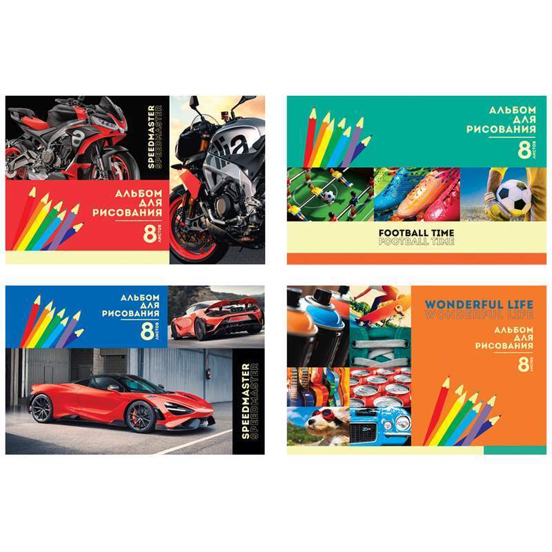 Альбом для рисования 08л., А4, на скрепке BG "Mix. Мальчики", ассорти, эконом, арт. АР4ск8 8736 купить оптом в Минске и Беларуси - Оптоград