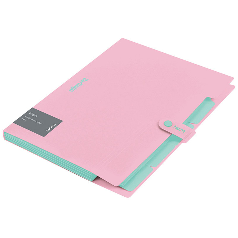 Папка 5 отделений Berlingo "Haze", А4, 600мкм, на кнопке, розовая, софт-тач, арт. XF4_05923 купить оптом в Минске и Беларуси - Оптоград