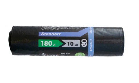 Мешки для мусора ПНД "Glionni" 180л, черный цвет, Standart. 10 шт./рул. купить оптом в Минске и Беларуси - Оптоград